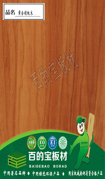 百的寶黃胡桃生態板是將有不同顏色或紋理的進口原紙放入環保樹脂膠粘劑中浸漬,然后干燥到一定固化程度,將其鋪裝在實木多層、細木工板表面,經高溫熱壓而成的高檔裝飾板。