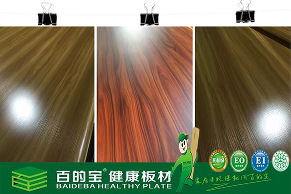 板材品牌百的寶免漆飾面板表面色澤飽滿、色彩亮麗 百的寶免漆飾面板在制作飾面層時,采用的原紙重量至少在80g/平方米以上,油墨也是進口高端品牌,從而確保最終印制出來的裝飾紙張,色澤艷麗飽滿,視覺效果好。